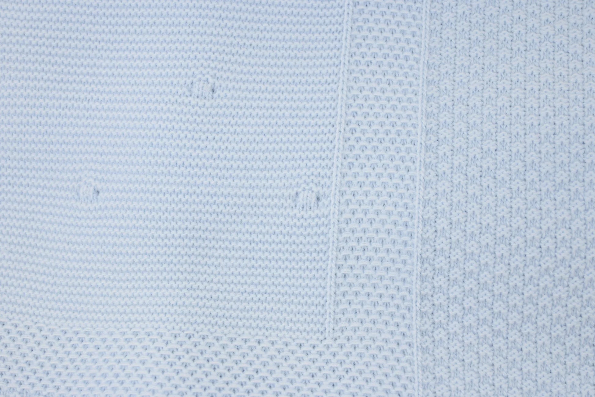 This classic baby shawl, crafted from luxuriously soft blue acrylic, features a striking textured knit border and measures 100cm by 100cm. Perfect for making a bold statement, it’s an exceptional gift choice for newborns.