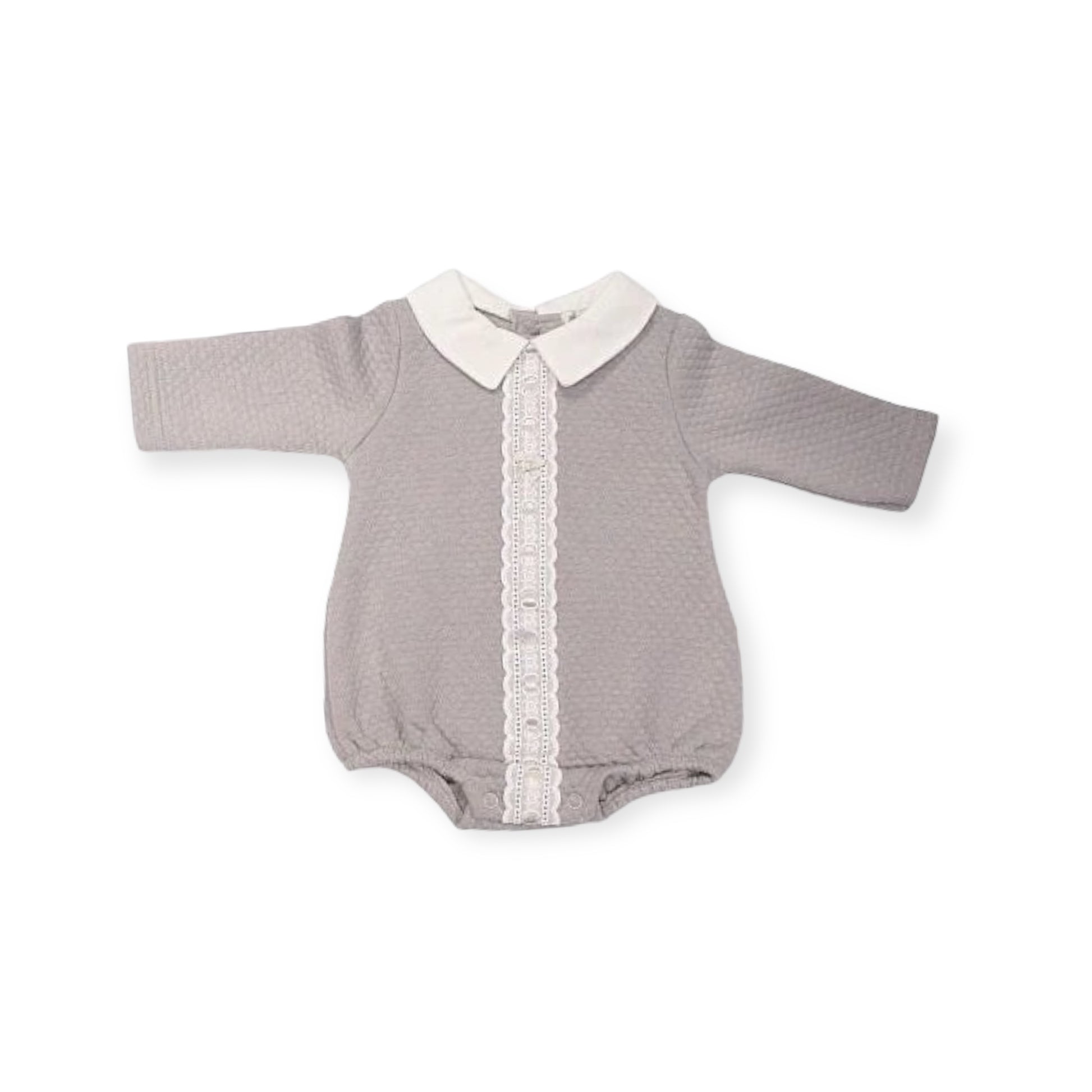 Dress your baby in this charming grey romper featuring a sweet bow and delicate lace accents. Crafted by My Little Chick from a cozy mix of 65% polyester and 35% cotton, it’s designed for comfort and cuteness. Available in NB, 0-3, and 3-6 month sizes, it’s perfect for tiny explorers full of charm.