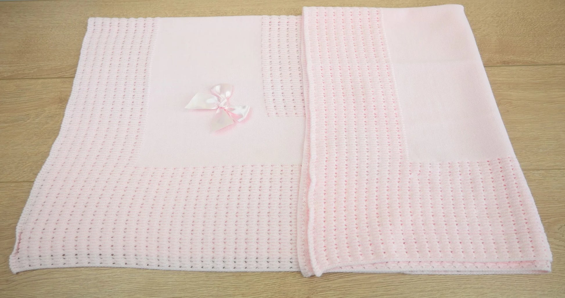 Wrap your baby in bold comfort with this traditional pale pink shawl, crafted from ultra-soft natural acrylic. Its striking square shape and textured knit panels, measuring 100cm by 100cm, make it a standout piece—and a fearless choice for a new-born gift.