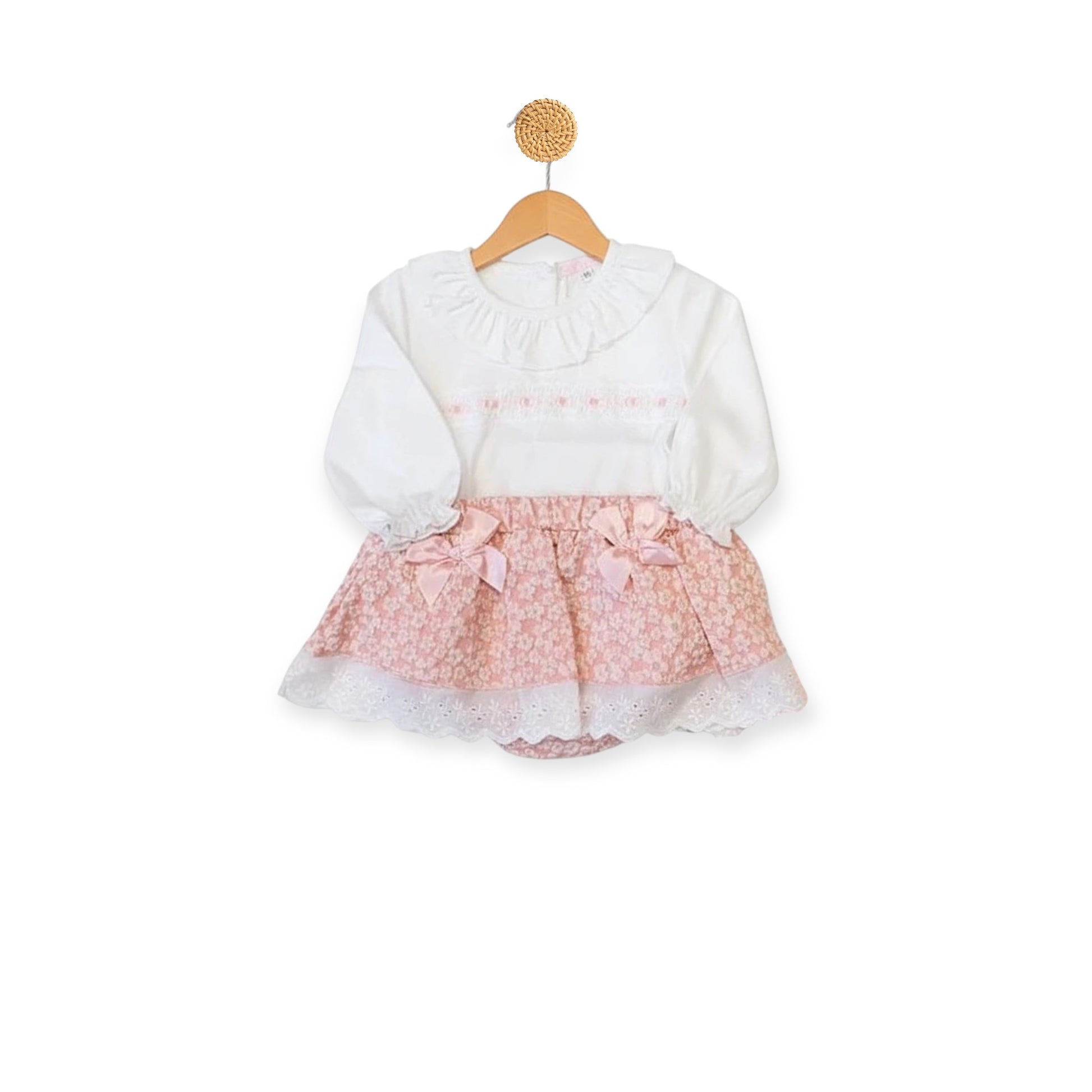 Add a touch of sweetness to your baby's wardrobe with the My Little Chick Pink Floral Skirt & Top Set. This charming outfit features a delicate pink and white floral skirt adorned with two adorable bows, perfectly paired with a soft white frill top. Designed for comfort and cuteness, it's ideal for newborns up to 9 months. Whether for a special occasion or everyday fun, this playful set ensures your little one looks stylish and feels cozy all day long. Embrace every giggle and twirl in this delightful ensemble!